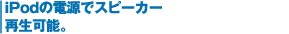 乾電池やACアダプタがなくてもiPodの電源を使用してのスピーカー再生が可能です。 ※ iPodの電源での動作は音量に制限があります。