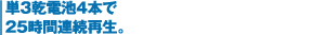 電源は単3乾電池4本で最大25時間の連続再生が可能です。