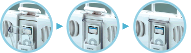 | 防水カバーを開けてiPod nano/iPod miniをワンタッチでセットOK。
